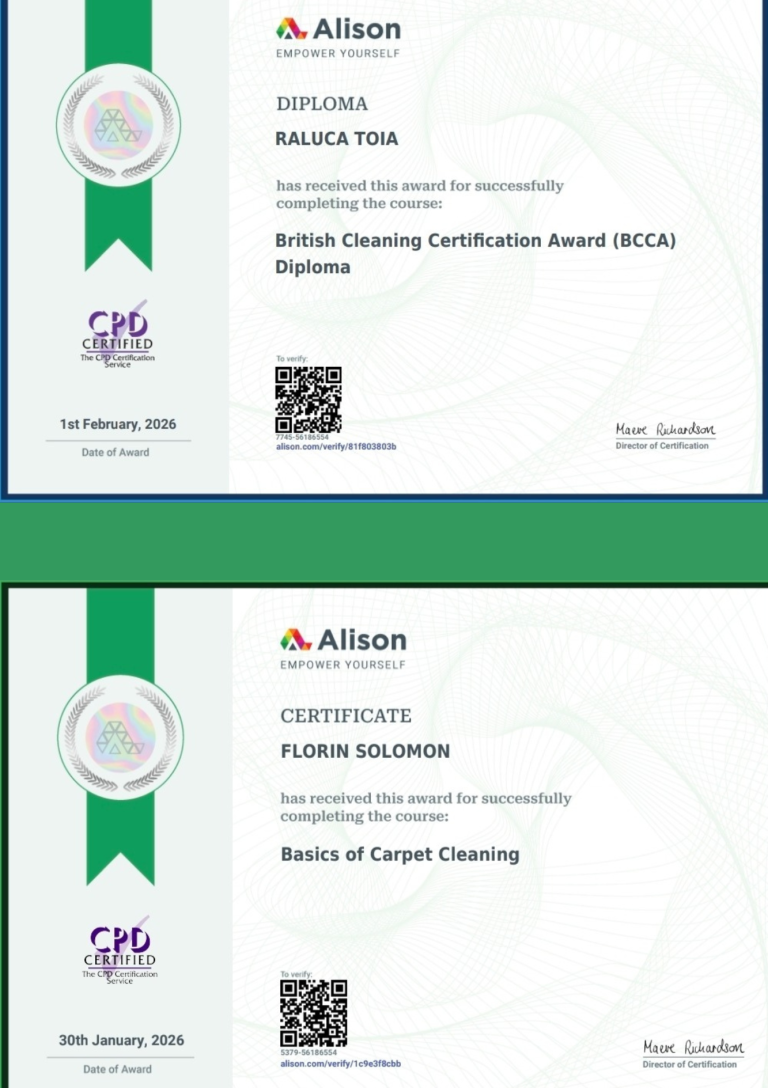 Pawfect Clean is a leading provider of cleaning and maintenance solutions, committed to delivering high-quality services to both commercial and residential clients. Our team of skilled professionals is fully trained and certified, holding BCCA-accredited carpet and upholstery cleaning qualifications as well as CPD-certified training in Basics of Carpet Cleaning awarded by Alison.